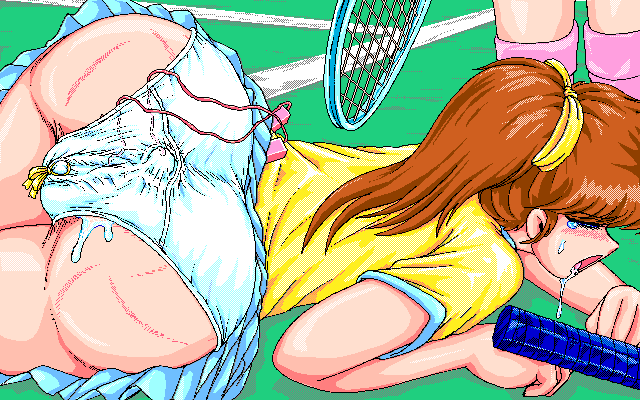 This illustration could be viewed from a similar perspective. When this girl arrived at the swank, private tennis club to play a few sets with a new friend she had made at school she did not have sex in mind, but she was already slightly predisposed to taking a submissive role. After a set of lame play, the result of not wanting to annoy her new friend and thus not get invited back, her friend took her into the locker room and gave her a sound spanking, which she found strangely arousing. After a second weak game her friend decided to make it clear that she wanted a hard-fought game, and after fixing her up the way we see her here told her that the vibrators would be removed only when she started to play in earnest. Incapable of putting up a good fight, and now more than ever wanting to be in the role she had been thrust into, she simply played until her orgasms made her legs too weak to support her. Quivering on the court, she is overwhelmed with a feeling of satisfaction she has never know before.